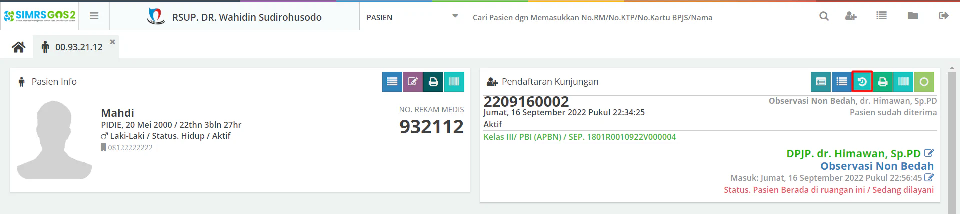 1. Pada dashboard pasien klik tombol history seperti yang telah ditanda pada gambar dibawah