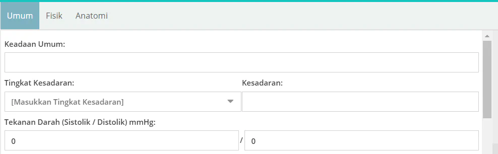 Silahkan isi berdasarkan hasil pemeriksaan pasien, saat Pindah tab otomatis isian akan tersimpan.